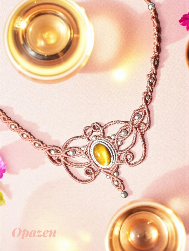 #opazen #bijouxmacrame #pieceunique #creationsartisanales #malachite #quartzrose #oeildetigre #bijouxzen #pierresnaturelle