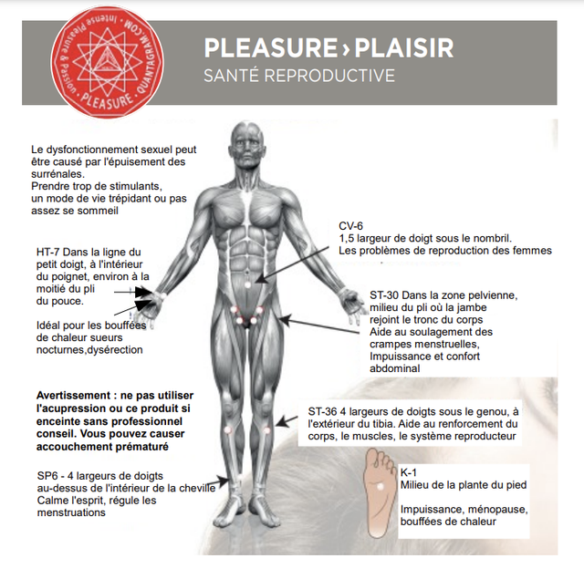 De nombreuses personnes qui utilisent nos kits d'acupression Pleasure « Do-It-Yourself » ont partagé des témoignages sur la façon dont ces kits ont contribué à soulager les bouffées de chaleur, à gérer les symptômes de la ménopause et même à répondre aux problèmes de santé sexuelle. En appliquant une légère pression sur des points d'acupuncture spécifiques, vous pouvez soutenir les processus de guérison naturels de votre corps et favoriser l'équilibre hormonal.