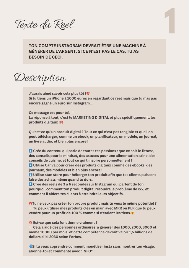 - Fais tes premières ventes : Utilise ces Réels pour engager ton audience et transformer tes abonnés en clients.