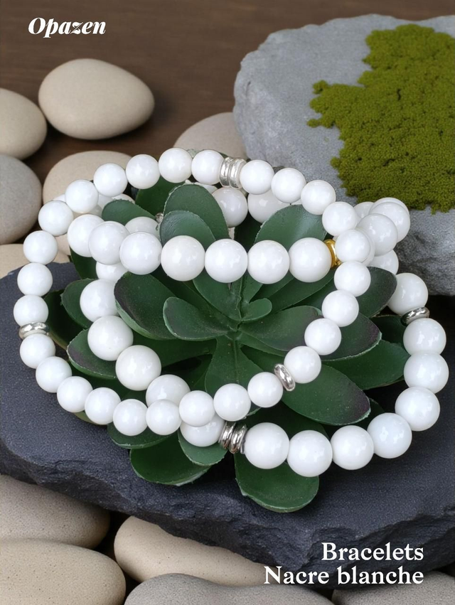 ⚠Bracelet artisanal en Nacre Blanche, qualité extra, disponible en 6 mm et 8 mm.