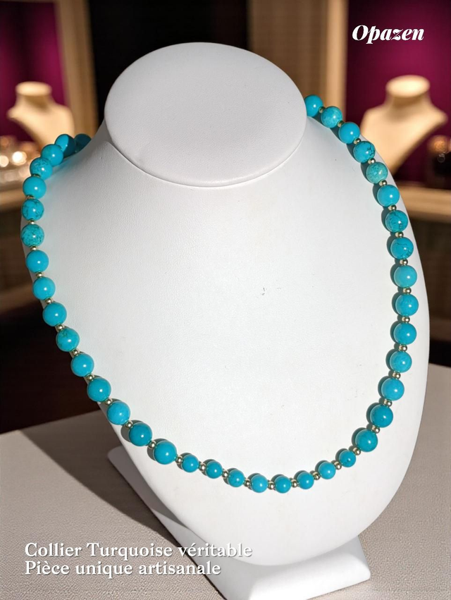 Un collier exceptionnel composé de 40 perles en turquoise véritable, montées avec soin.